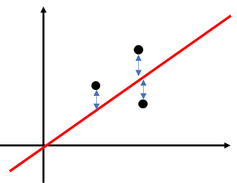그림에서 파란색선의 제곱의 합을 RSS(Residual Sum of Squares)라고 하고 RSS(Residual Sum of Squares)가 가장 작은 지점의 기울기와 절편을 구하는 알고리즘은 OLS(Ordinary Least Sqaures)라고 합니다.