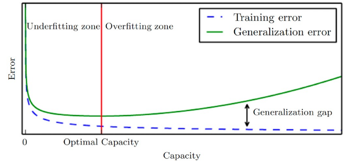 과소 적합이란 Training에서 모델이 충분히 낮은 에러를 획득하지 못한 경우를 말합니다. 주로 데이터 양이 적을 때(Low Capacity) 발생합니다.