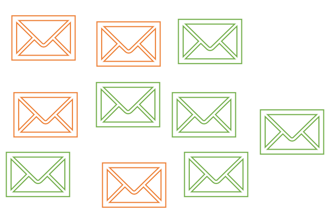 위 그림과 같이 10개의 메일이 있습니다. 빨간색은 스팸이고 녹색은 정상 메일입니다.