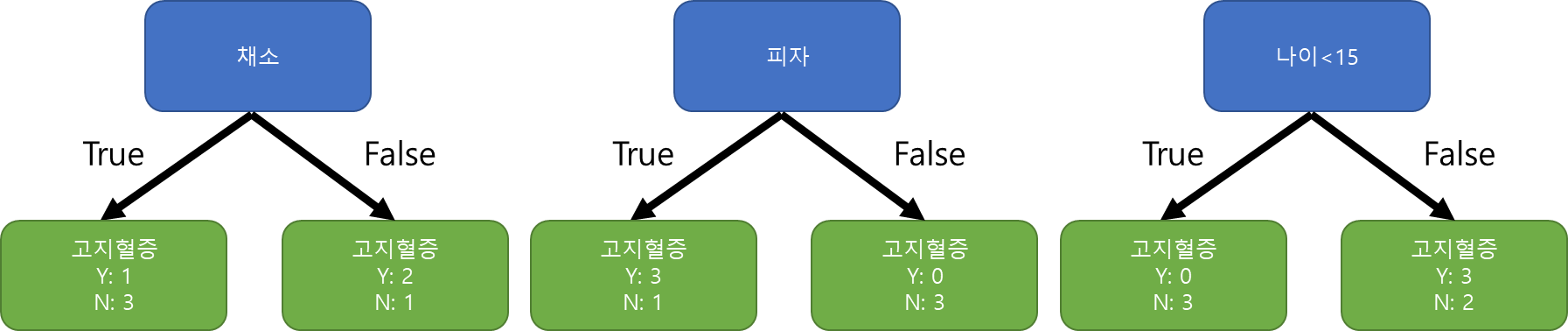 앞서 포스트(https://scribblinganything.tistory.com/709)에서 구한 채소와 피자에 이제 나이에 대한 지니 불순도를 구했습니다.