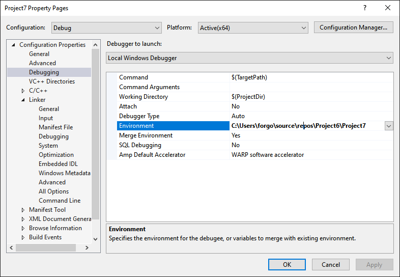 위 그림과 같이 Debugging에서 dll의 경로를 추가해줍니다. 주의할 점은 Configuration을 설정에 따라 변경하셔야 합니다. 저는 지금 Debug 모드로 사용하기 때문에 Debug 설정을 하였습니다.