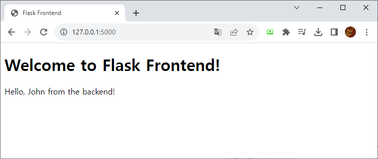 Flask 프레임워크를 사용하여 간단한 백엔드와 프론트엔드를 구현해보겠습니다. 이 예제에서는 JSON 데이터를 반환하는 간단한 API 엔드포인트와 HTML 템플릿을 렌더링하는 프론트엔드를 만들어보겠습니다.